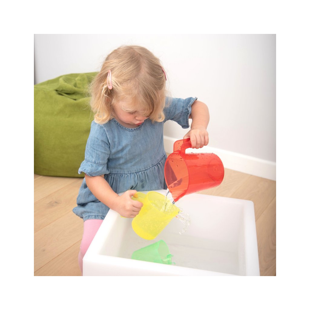Stohovatelné průsvitné odměrky TickiT® ve 3 jasných barvách promění každé smyslové hraní s vodou a pískem v objevování, zkoumání a radost z učení. Děti přirozeně experimentují s přeléváním, objemem a vlastnostmi tekutin, zatímco si rozvíjejí jemnou motoriku a soustředění už od 12 měsíců.