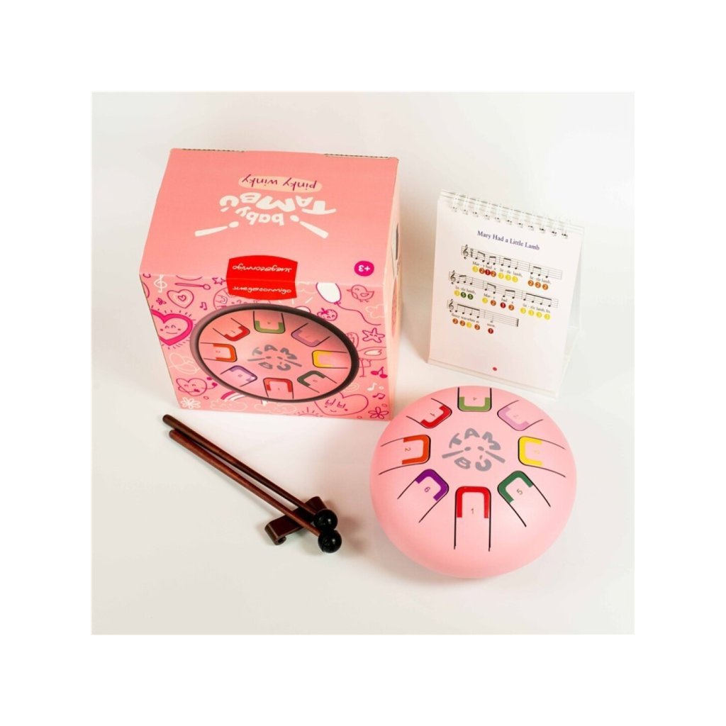 Tambú Baby je kovový bubínek pro děti od 3 let s průměrem 15 cm, který rozvíjí jemnou motoriku, hudební sluch a kreativitu. Barevné tóny a jednoduché noty usnadňují hraní prvních melodií i úplným začátečníkům.
