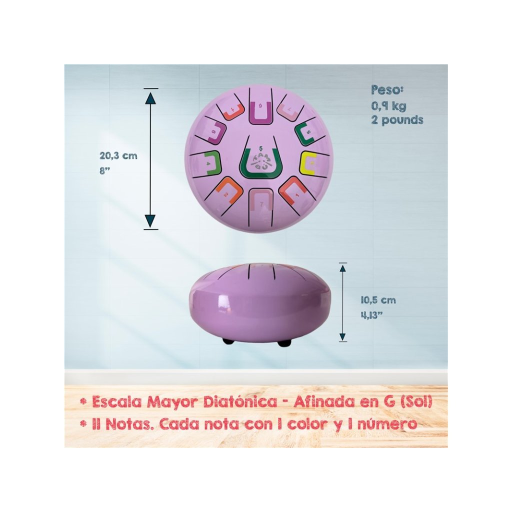 Tambú fialový je kovový bubínek pro děti od 3 let, který rozvíjí hudební sluch, jemnou motoriku a kreativitu. Barevné tóny usnadňují první melodie, každý tón ladí harmonicky, a doprovodné noty umožní hrát i úplným začátečníkům.