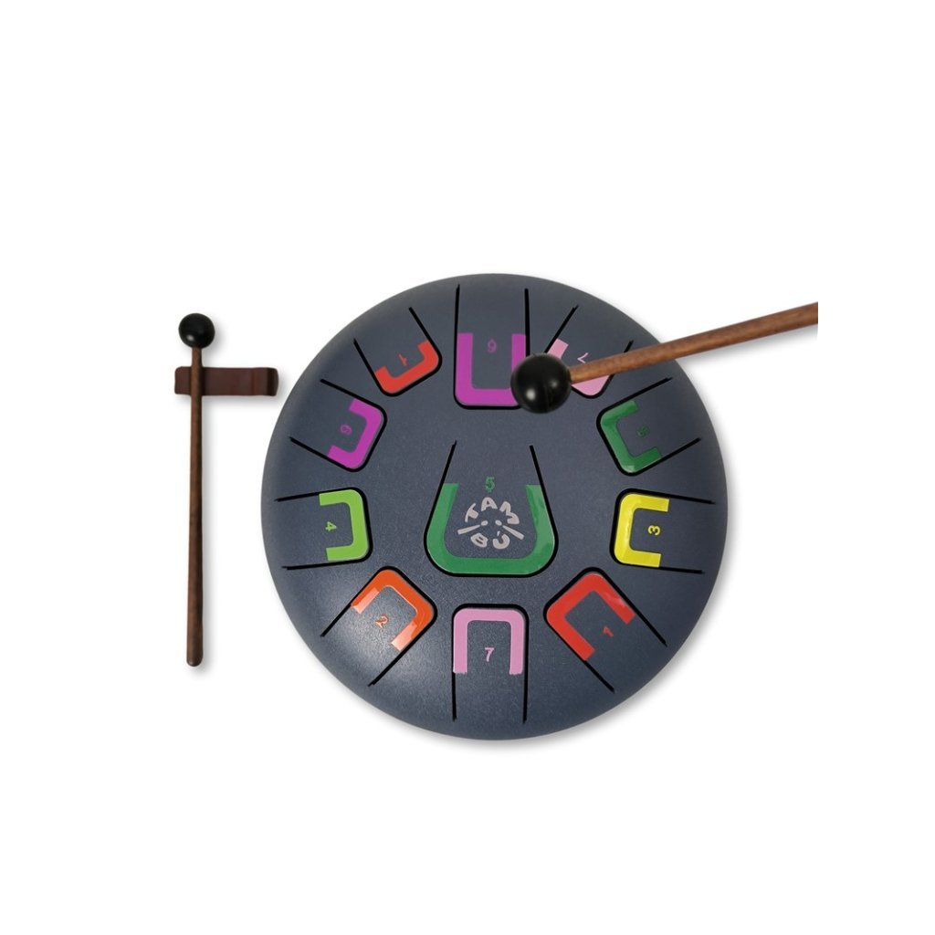 Kovový bubínek Tambú v elegantní šedivo-modré barvě je ideální pro děti od 3 let. Díky barevným tónům se snadno naučí první melodie, rozvíjí jemnou motoriku, hudební sluch i kreativitu. Každý tón vždy krásně ladí, takže hraní je radost od prvního úderu.