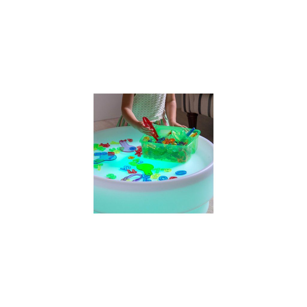 Položte destičky na světelný stůl nebo Light Panel a sledujte vznikající barevné odlesky a stíny. Skvělá aktivita pro pozorování světla a barevného kontrastu, která rozvíjí zrakové smysly. -