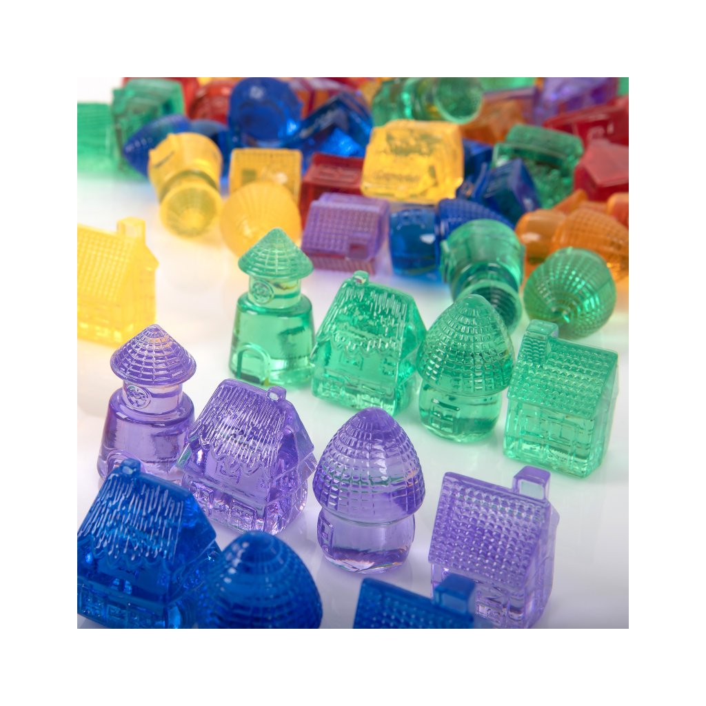 Barevné průhledné domečky Tickit Translucent Colour Homes promění hru v magickou cestu plnou fantazie, objevování a radosti. Děti s nimi mohou postavit celé vesnice, městečka nebo pohádkové světy a při tom rozvíjet dovednosti, které využijí i v každodenním životě. Domečky jsou v 6 zářivých barvách a 4 tvarech, takže se skvěle hodí k učení barev, tvarů i základních matematických principů. Díky průhlednému materiálu nádherně vyniknou na světelném panelu nebo stole.