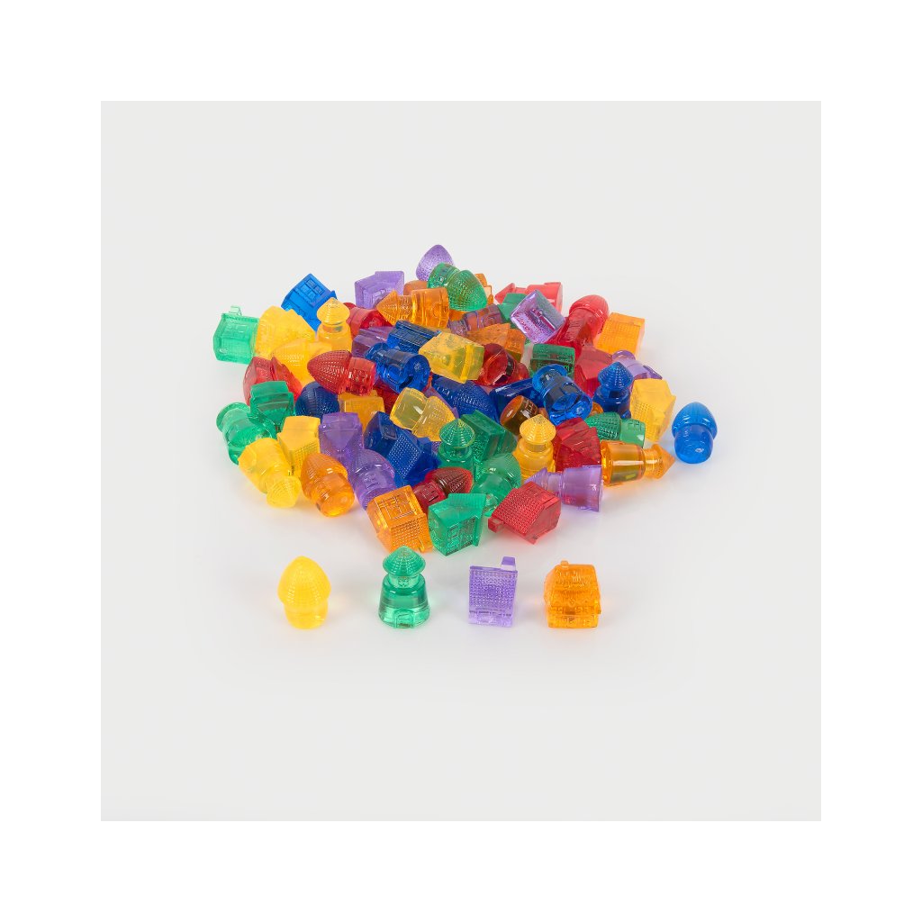 - Spojení s dalšími sadami Tickit – domečky jsou součástí Translucent Colour Play řady, takže je můžete kombinovat s barevnými rybkami, autíčky, hmyzáčky a mušlemi a drahokamy pro ještě pestřejší hru.