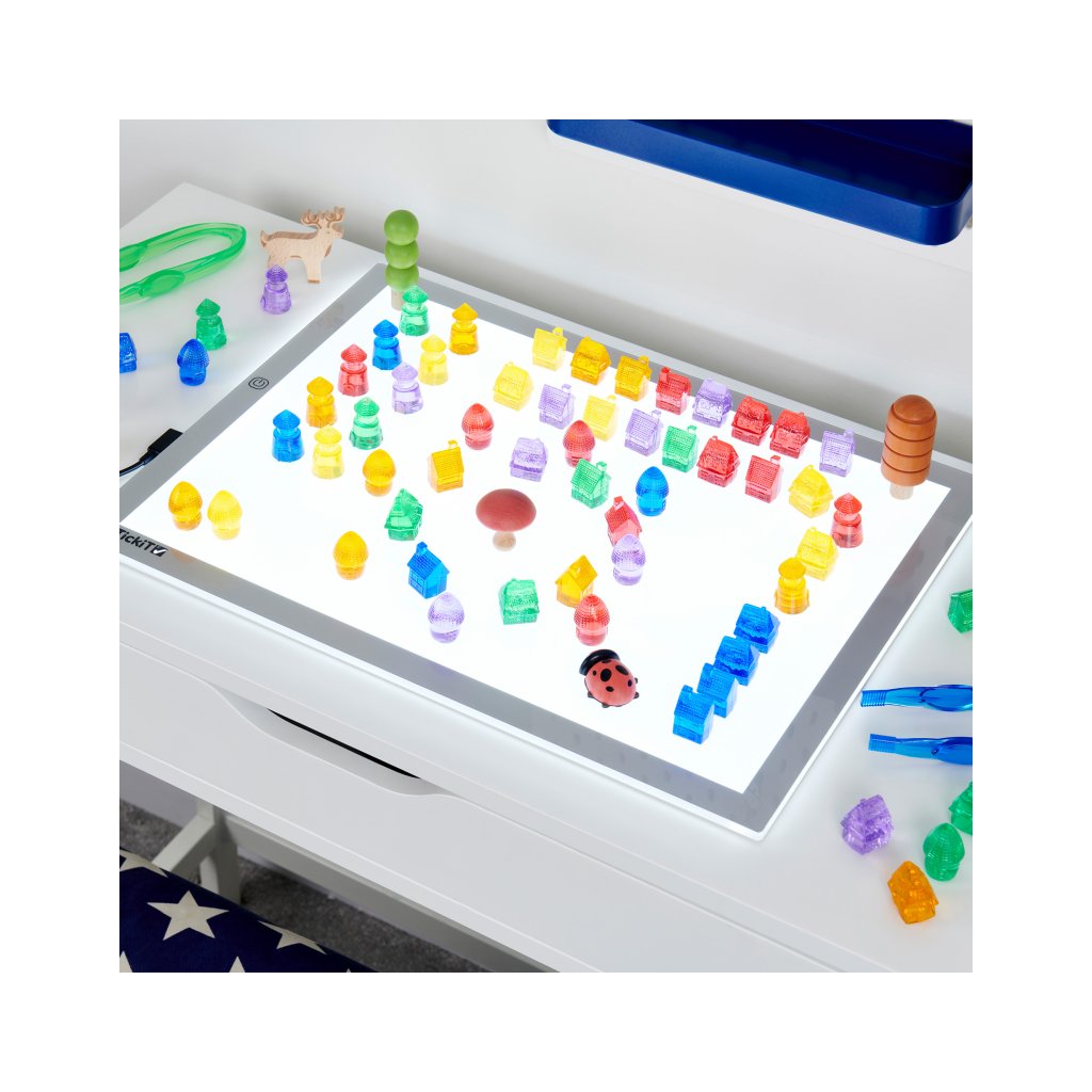 - Světelné městečko – postavte domečky na světelný Light panel a sledujte, jak se barvy prolínají a září.