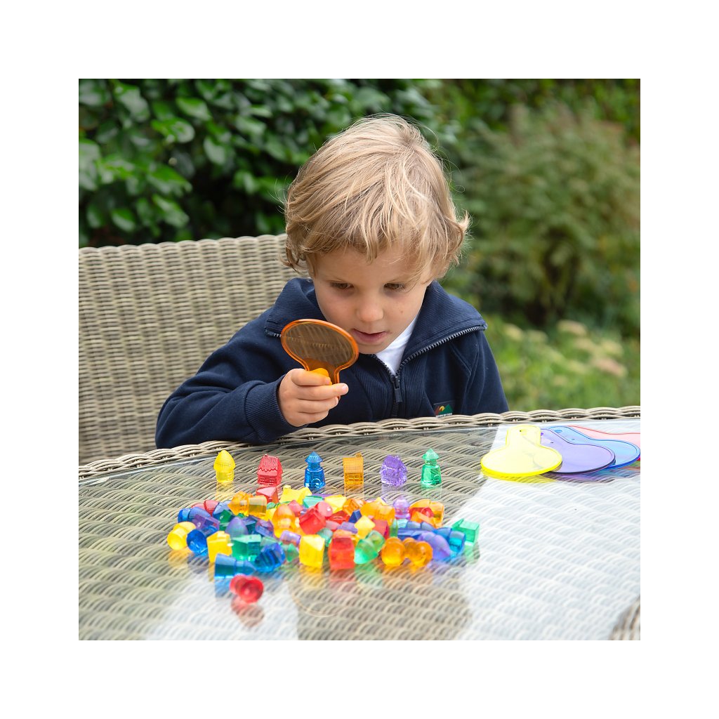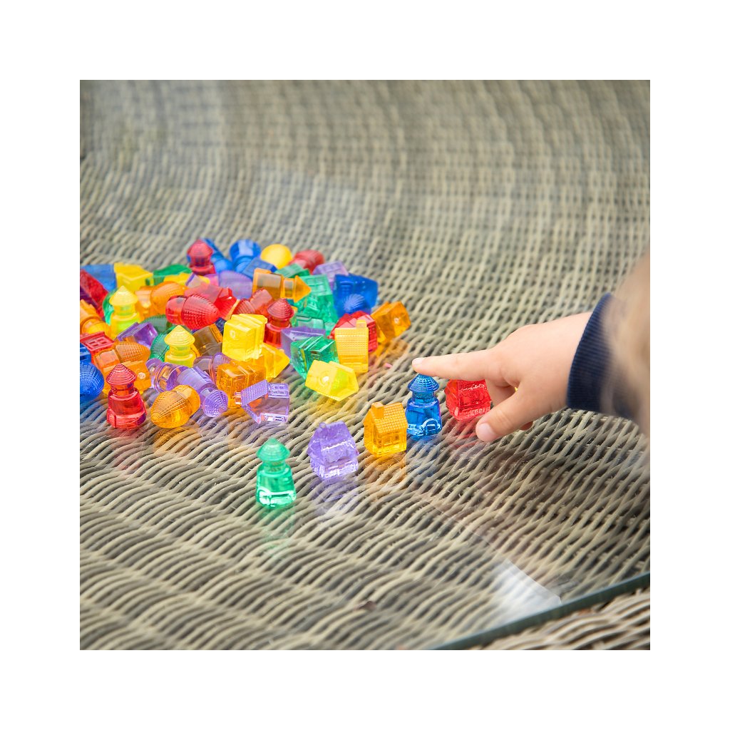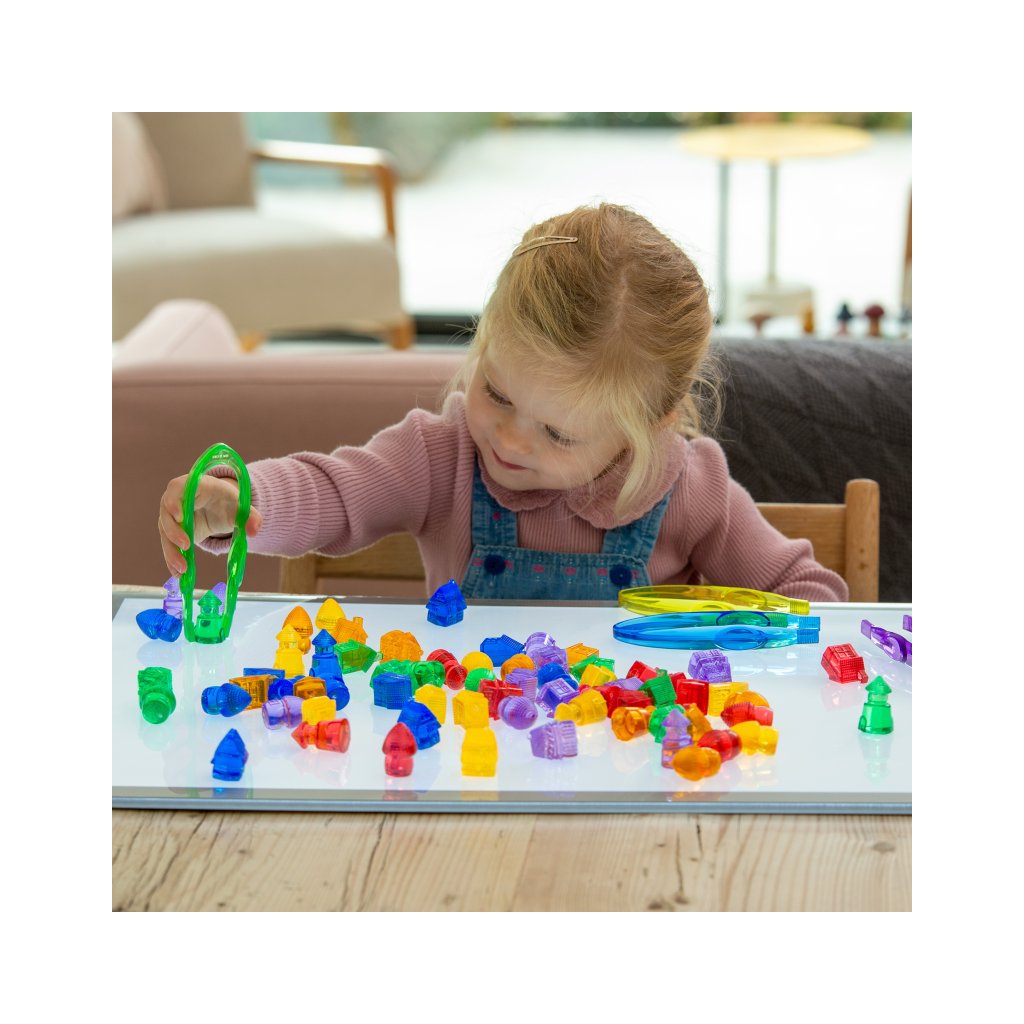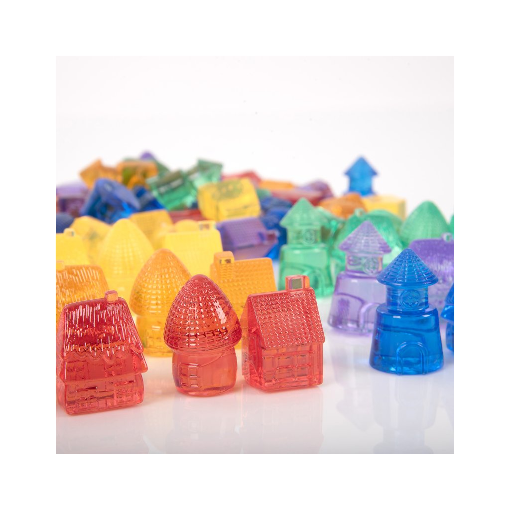 Barevné průhledné domečky Tickit Translucent Colour Homes 72 kusů promění hru v magickou cestu plnou fantazie, objevování a radosti. Děti s nimi mohou postavit celé vesnice, městečka nebo pohádkové světy a při tom rozvíjet dovednosti, které využijí i v každodenním životě. Domečky jsou v 6 zářivých barvách a 4 tvarech, takže se skvěle hodí k učení barev, tvarů i základních matematických principů. Díky průhlednému materiálu nádherně vyniknou na světelném panelu nebo stole.