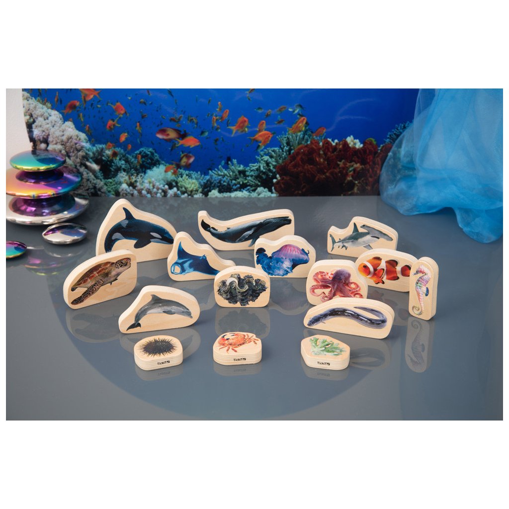 TickiT Dřevěné bloky - Mořský svět 15 ks