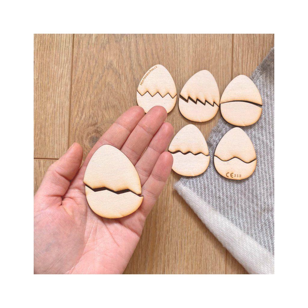 Hledáte jednoduchou, ale efektivní pomůcku pro rozvoj dětských dovedností? Dřevěná vajíčka v podobě puzzle jsou ideální volbou pro malé objevitele. Každé ze šesti vajíček je rozděleno unikátním řezem, což nutí dítě přemýšlet, které dvě části k sobě patří. Tato aktivita skvěle trénuje logické myšlení a koordinaci ruka-oko.