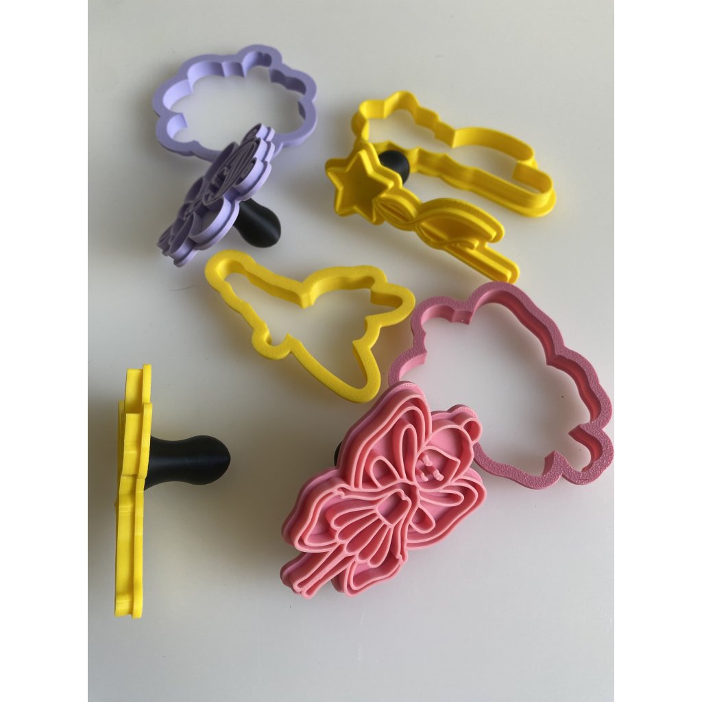 S touto kouzelnou sadou vykrajovátek (razítko + okraj na vykrojení) děti vykouzlí kouzelné víly a jejich svět. Každé tvořítko funguje jako razítko i vykrajovátko, ideální ke hře s modelínou nebo kinetickým pískem. Vykrajovátka mají černou úchytku, která zlepšuje manipulaci. Skvělý doplněk pro malé milovníky vílího světa, který podpoří jemnou motoriku, fantazii a radost z tvoření!