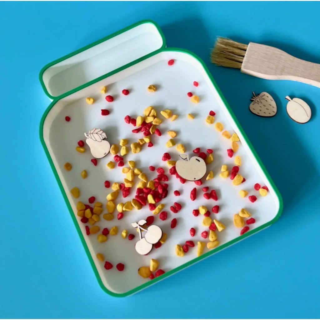Třídicí tácek Zavařovací lahev je nádherný doplněk a pomůcka určená ke senzorickému hraní, která dětem pomáhá objevovat svět skrze hmat, zrak a jemnou manipulaci. A přitom se skvěle baví! Tác skvěle doplní Montessori aktivity, hraní doma, v mateřské školce i v hernách. Je to výborný edukativní doplněk, který děti nejen zabaví, ale hlavně rozvíjí.